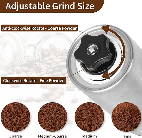 مطحنة حبوب القهوة اليدوية الخاصة بنا مصنوعة من الفولاذ المقاوم للصدأ 304، ما يجعلها قوية ومتينة وليس...